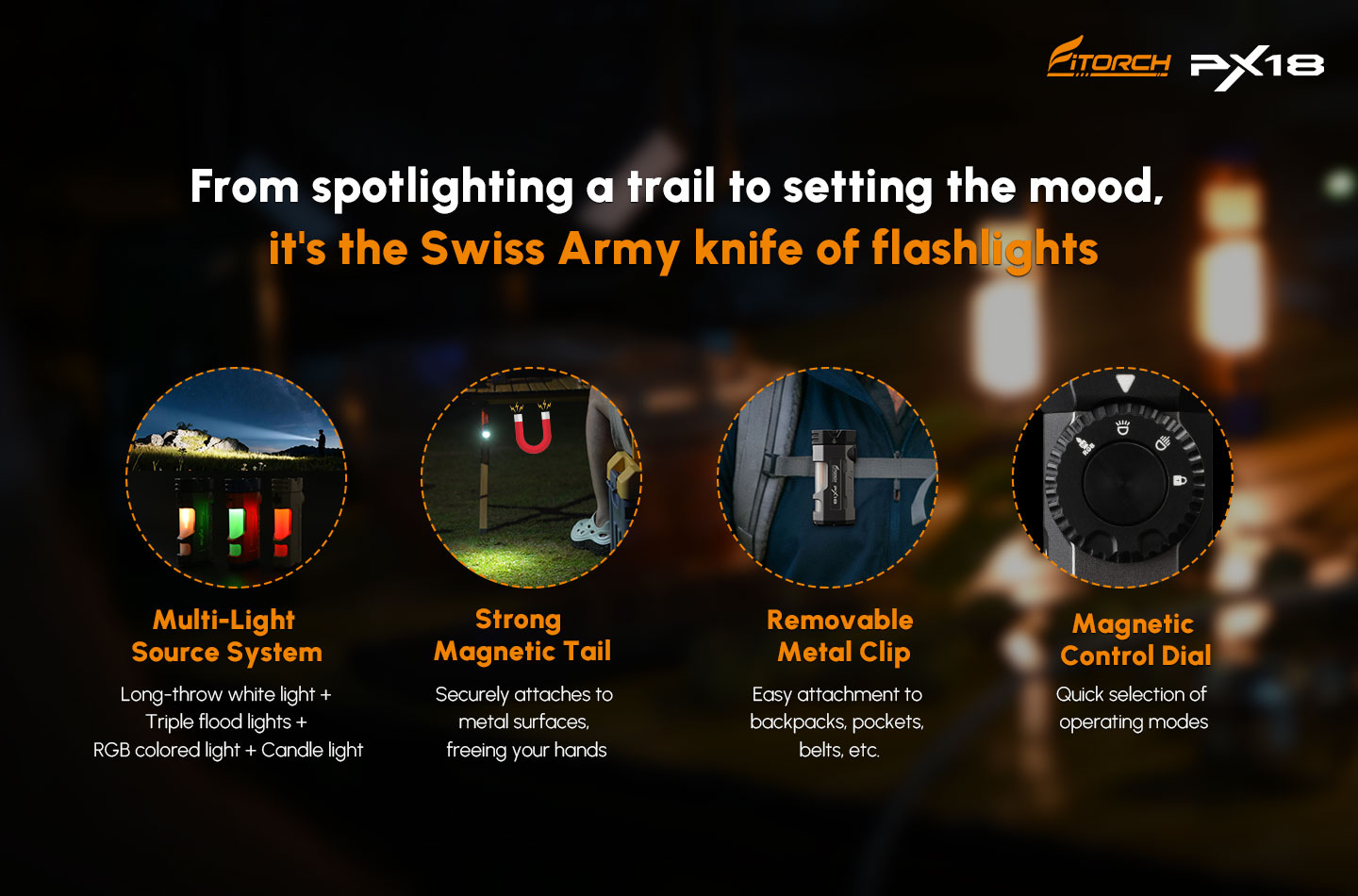 *Multi-Light Source System: Long-throw white light + Triple flood lights + RGB colored light + Candle light