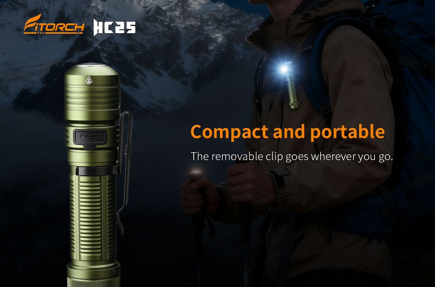 Rugged 6N01-T6 aluminum alloy body with hard-anodized finish, waterproof up to 2 meters.