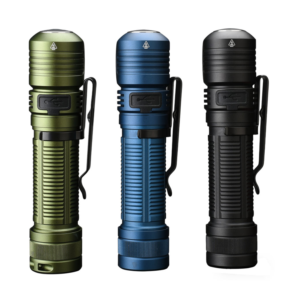Rugged 6N01-T6 aluminum alloy body with hard-anodized finish, waterproof up to 2 meters.